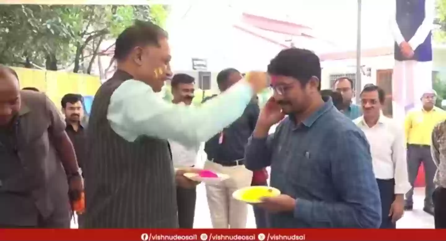 सीएम साय ने खेली होली : जशपुर निकलने से सुरक्षाकर्मी और स्टाफ के साथ खेली होली, बोले- आप मेरा परिवार