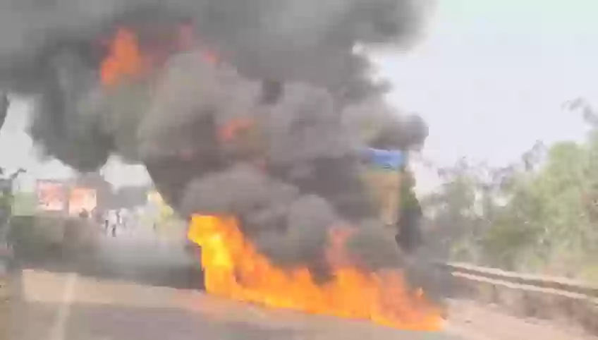 खारुन नदी पुल पर कोयला लदे ट्रक में लगी आग, ड्राइवर की सूझबूझ से टला बड़ा हादसा