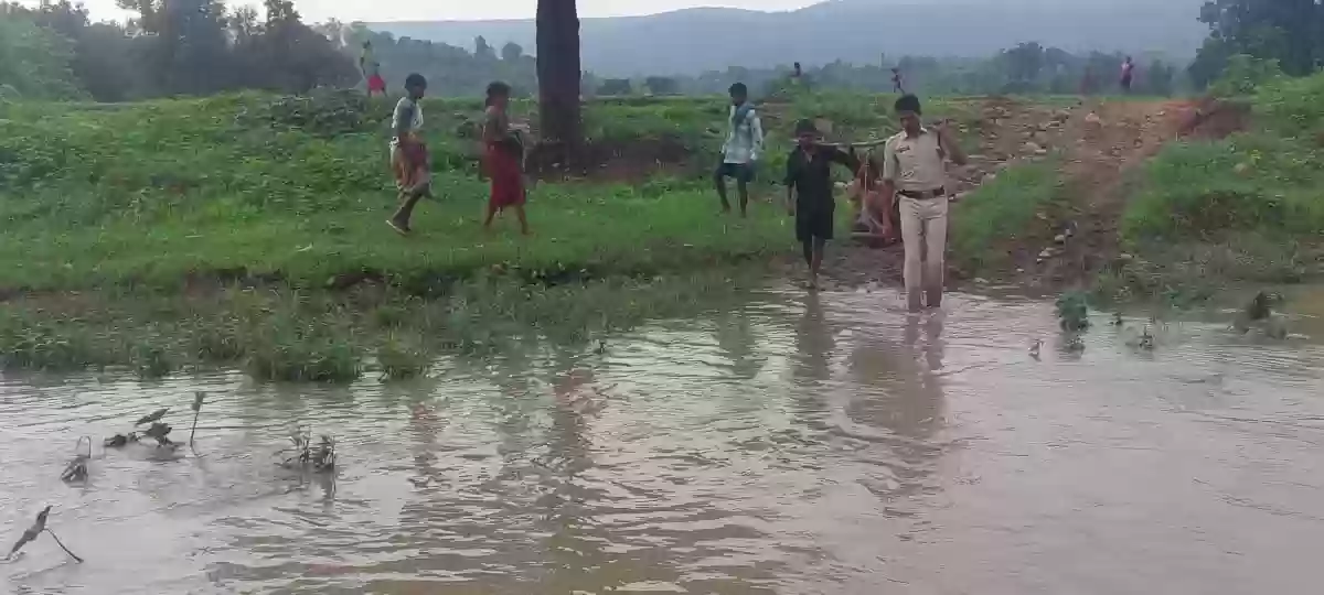 पुलिस के जवान ने पेश की मानवता की मिसाल, प्रसव पीड़ा के दर्द से तड़पती महिला को कांवर से उठाकर पहाड़ी नाले को पार कराया