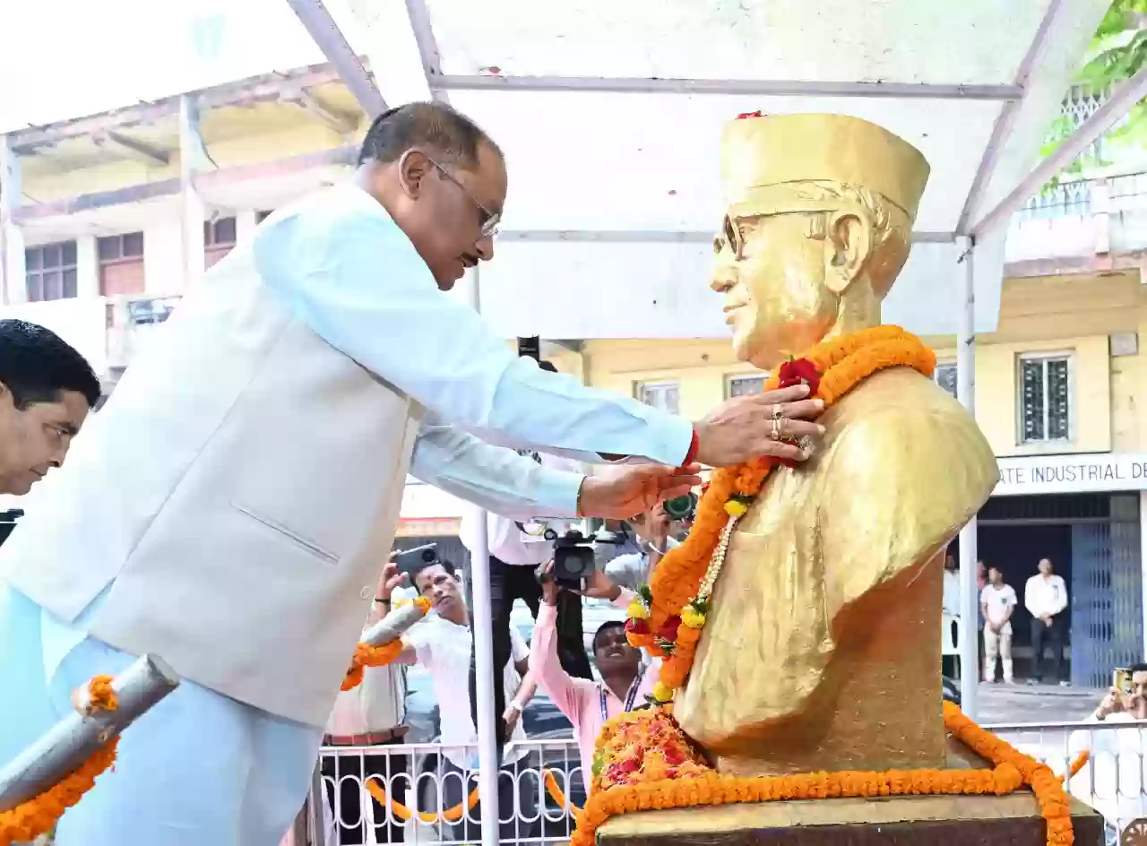मुख्यमंत्री विष्णु देव साय ने डॉ. खूबचंद बघेल की प्रतिमा पर माल्यार्पण कर उन्हें नमन किया