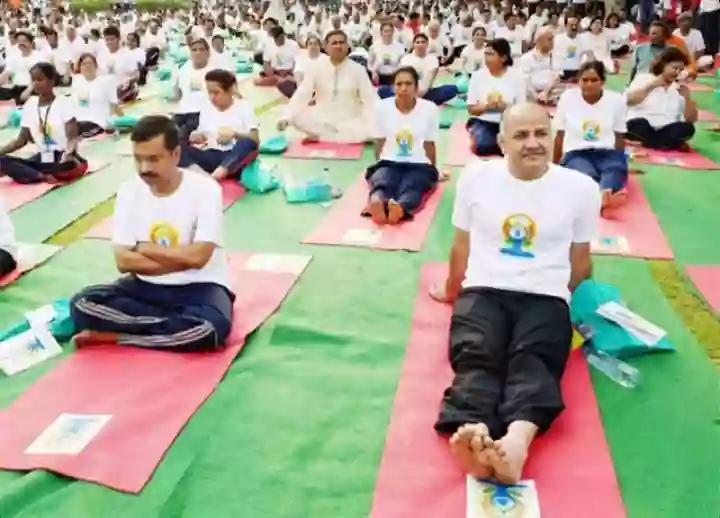 अंतर्राष्ट्रीय योग दिवस पर दिल्लीवासी के साथ मिलकर सीएम अरविंद केजरीवाल ने किया योगाभ्यास