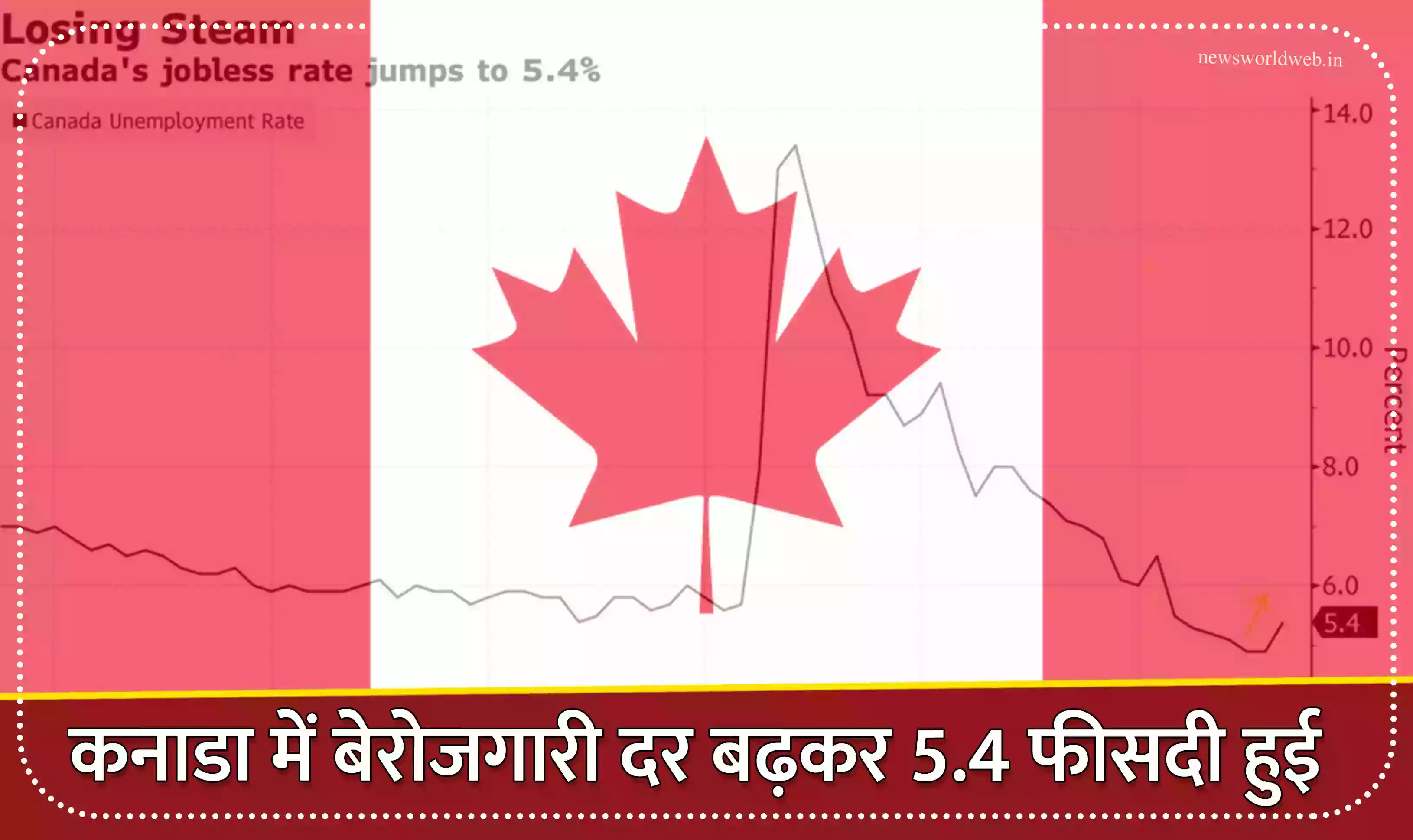 कनाडा में बेरोजगारी दर बढ़कर 5.4 फीसदी हुई